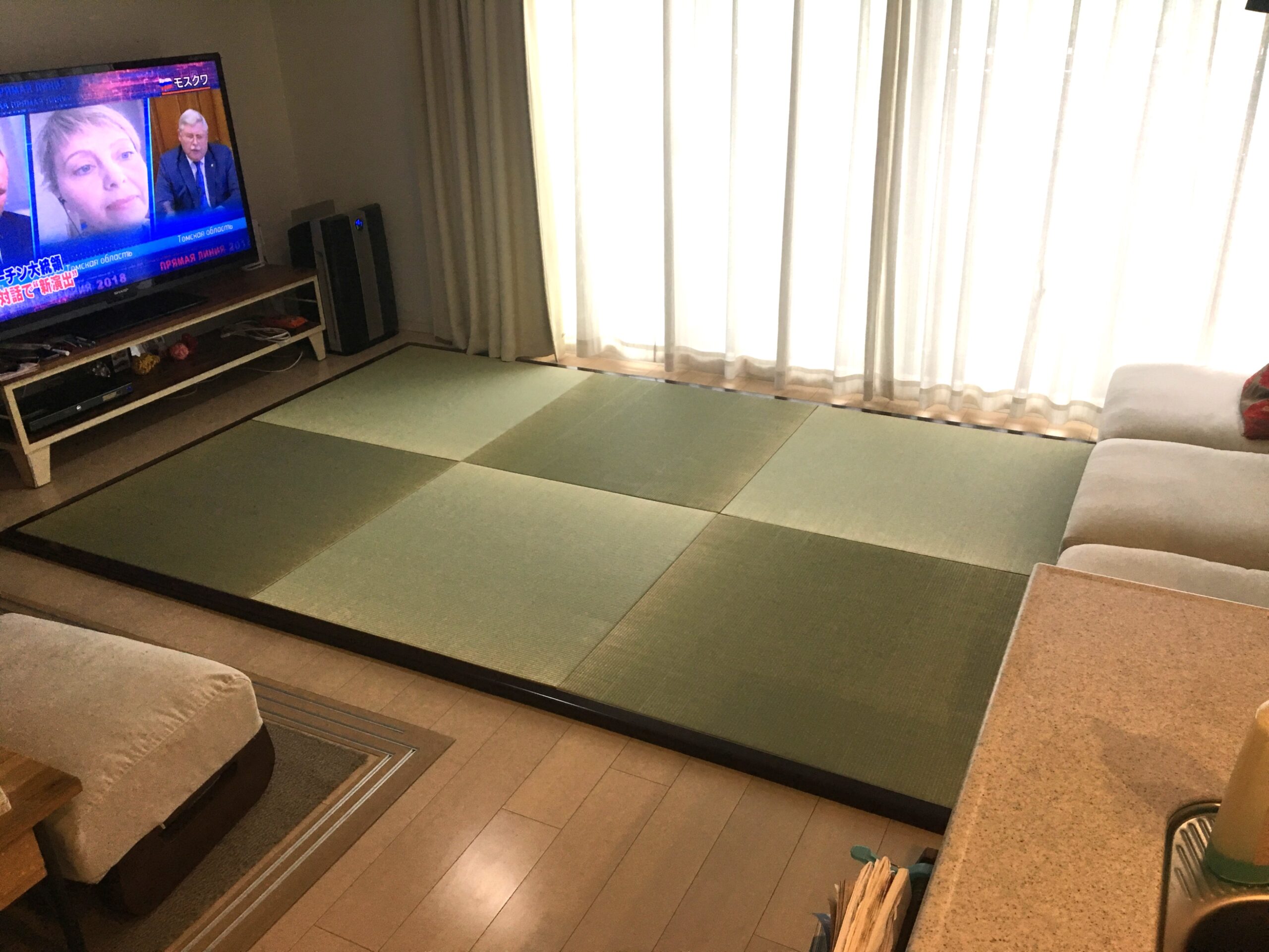 <ごろ寝・置き畳 (3畳タイプ)>定型サイズにてご購入いただきました。熊本産・天然イグサの縁ナシ仕様です。くつろぎスペースとしてちょっと寝転ぶのにちょうど良いサイズです。また木枠が組み立て式の置き畳ですので、気分に応じて出し入れも簡単に出来ます。ご用命、誠にありがとうございました。